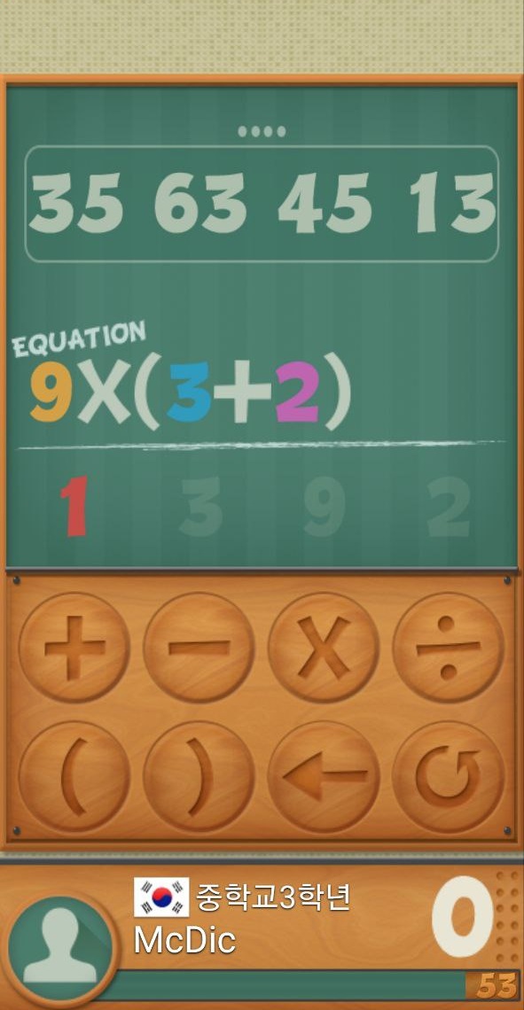 This is a mobile game called "산수의 달인", where you have to generate math formula using addition(\(+\)), subtraction(\(-\)), multiply(\(\times\)), or division(\(\div\)) with given \(4\) numbers.